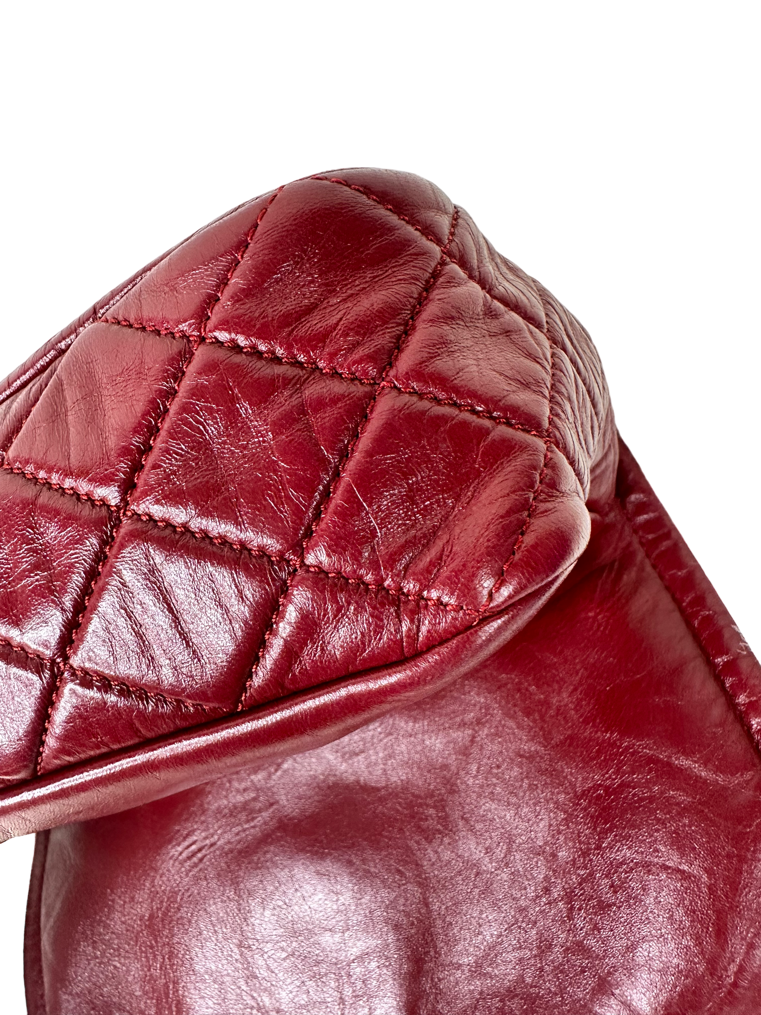Rank A- , minimal discoloration on the front flap, some scuff marks but no cracks. No loose stitch, quilt is still puffy.